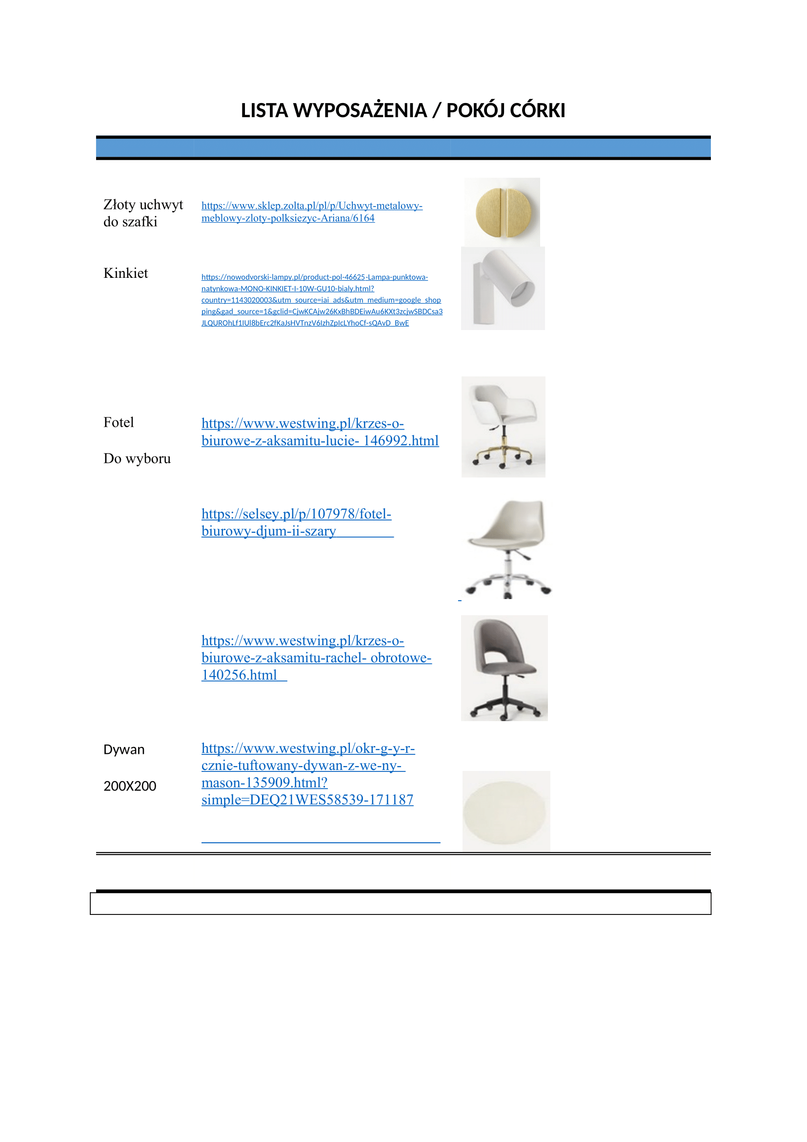 - Lista materiałów do zakupu