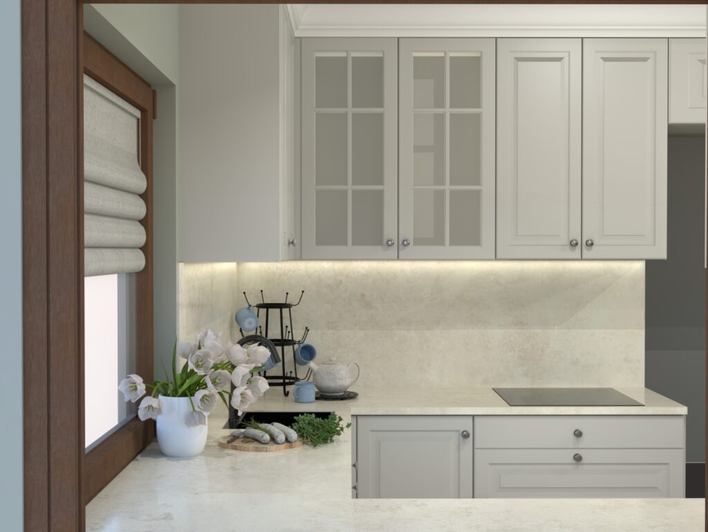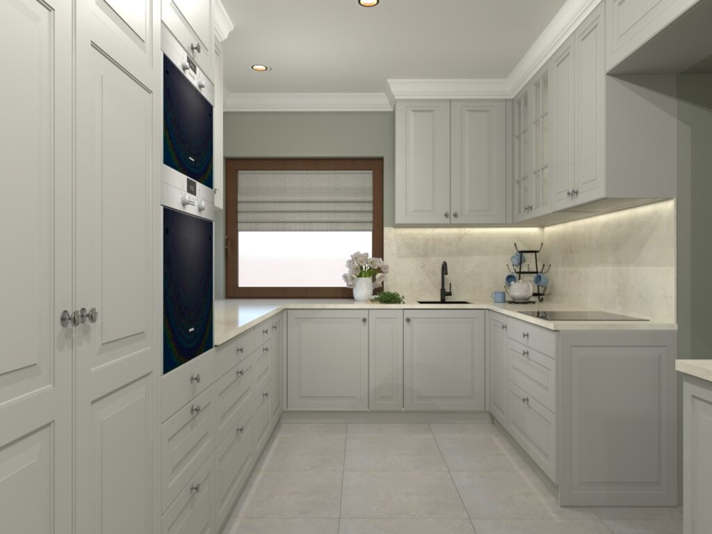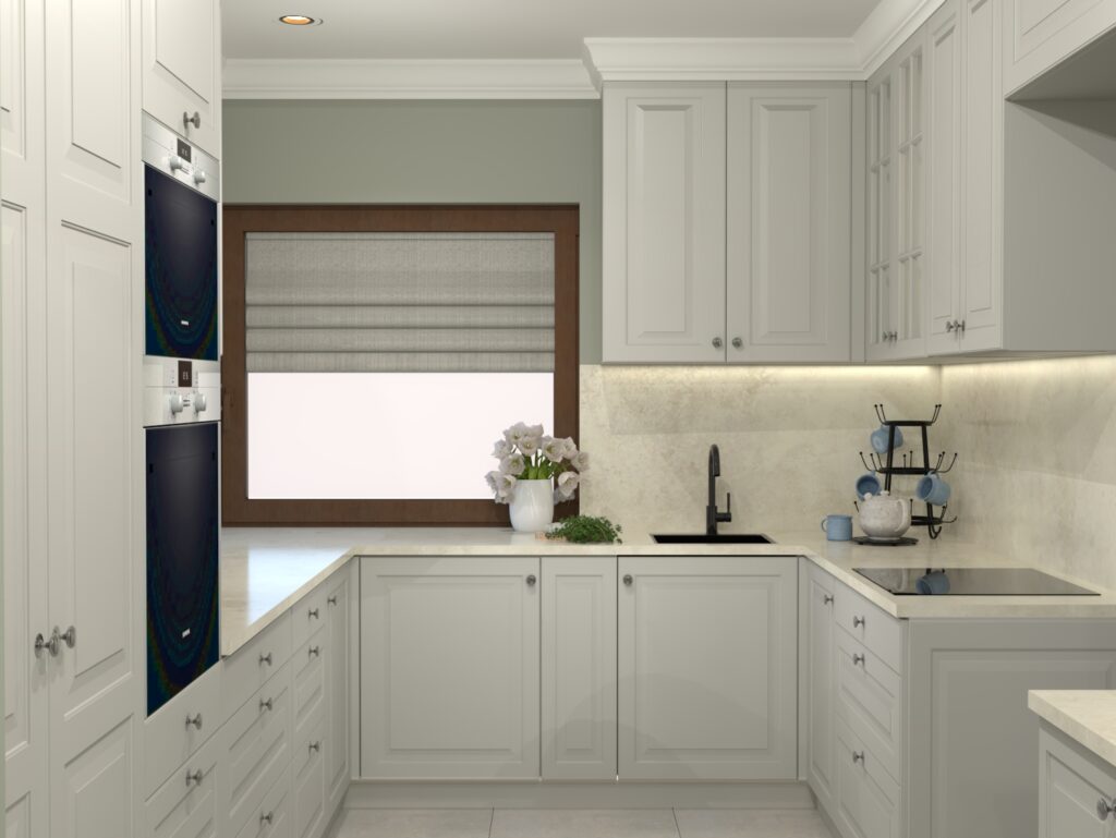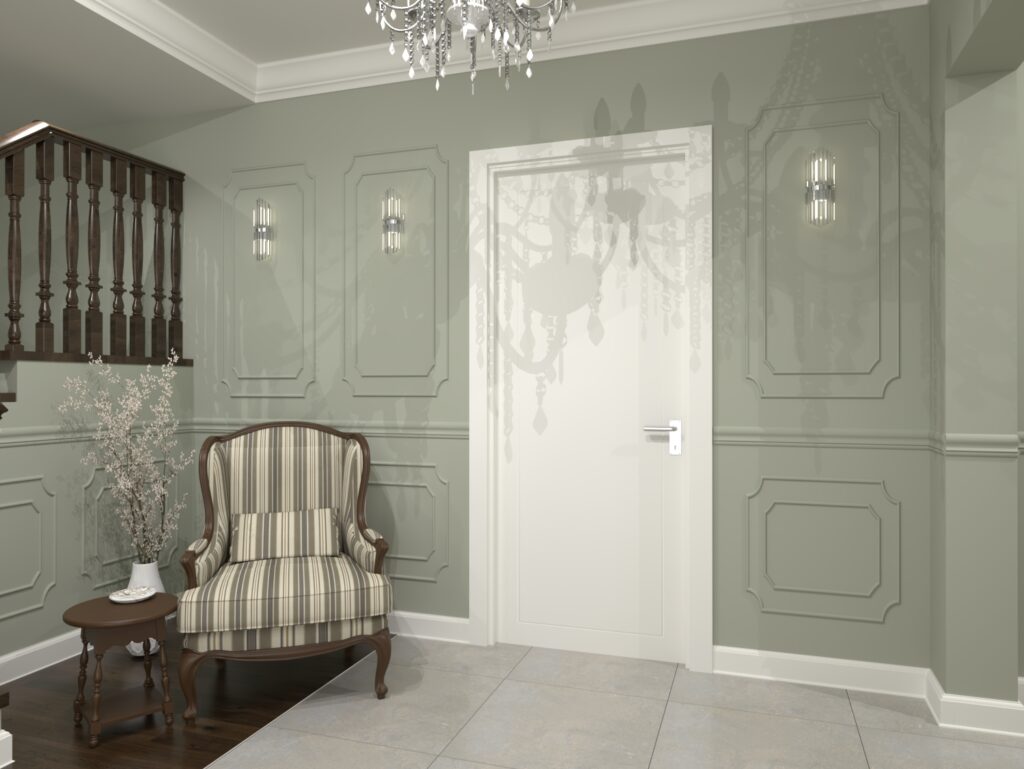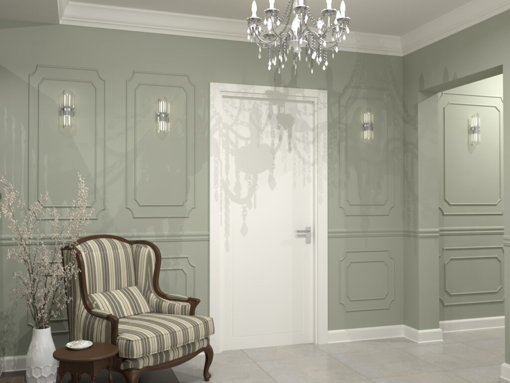 Aranżacja wnętrza w stylu klasycznym. Połączenie ciepłych kolorów i klasycznego stylu stworzyło ponadczasowe, eleganckie i przytulne wnętrze.