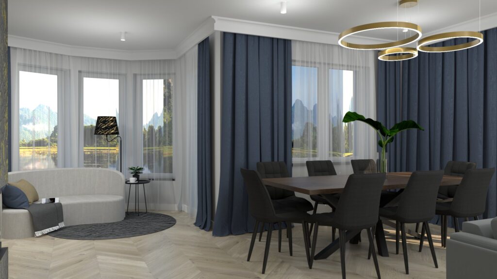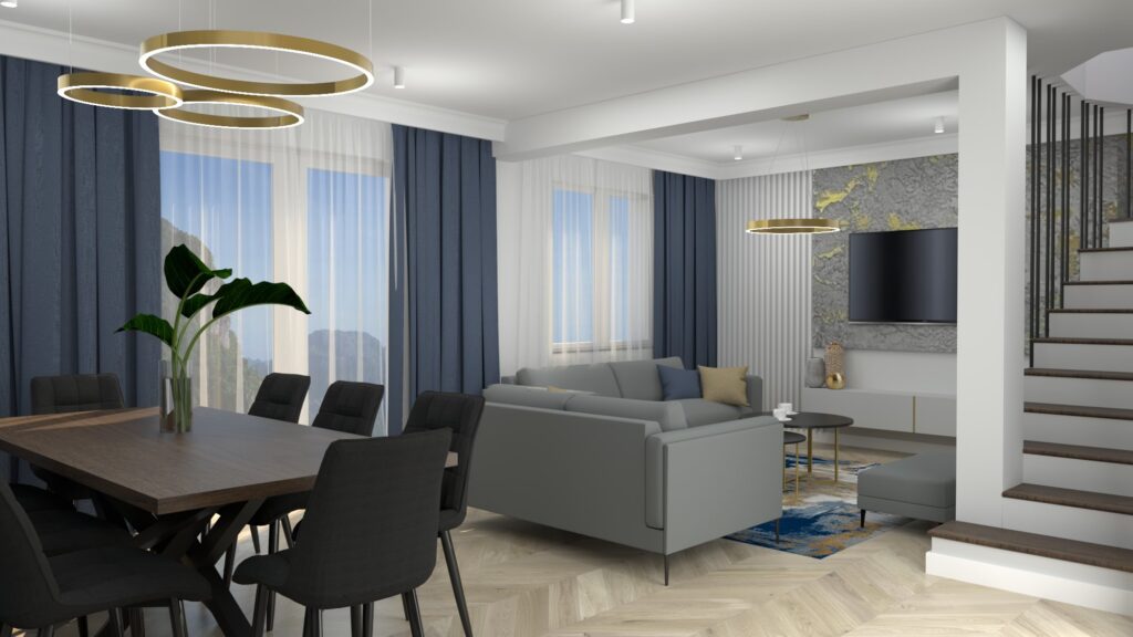 Wygodna, przestronna strefa dzienna. Miejsce zarówno na samotny relaks, jak i spotkania z rodziną i przyjaciółmi.