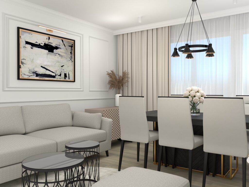 Połączenie dwóch nurtów, nowoczesności z klasyczną elegancją, stworzyło wnętrze stylowe i funkcjonalne.
